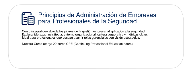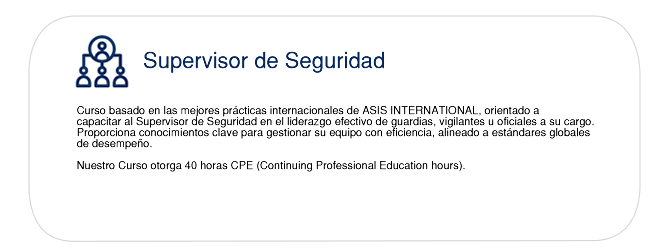 Los contenidos abarcan las áreas críticas de desempeño profesional en seguridad: gestión de crisis, seguridad personal y física, marco legal, protección de activos, respuesta ante emergencias , resolución de conflictos y habilidades comunicativas, entre otras.